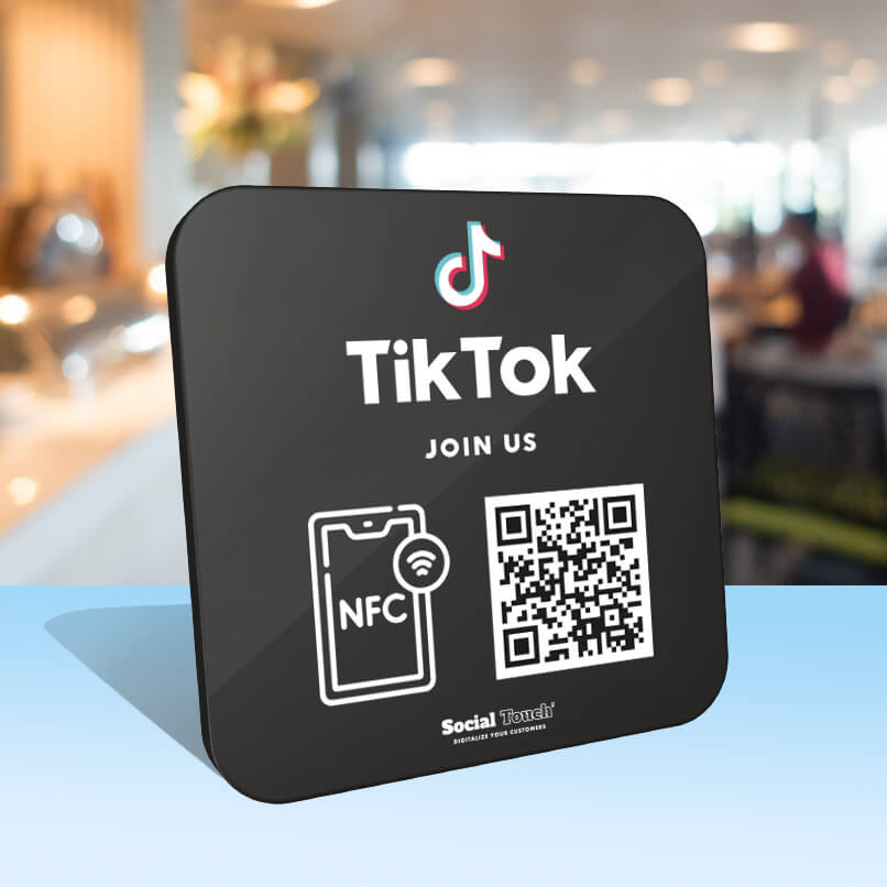 Thanks to SocialTouch’s TikTok connected NFC plate, your visitors can instantly access your TikTok profile without having to enter your nickname. Scan or touch a smartphone, and the link to your account is launched.