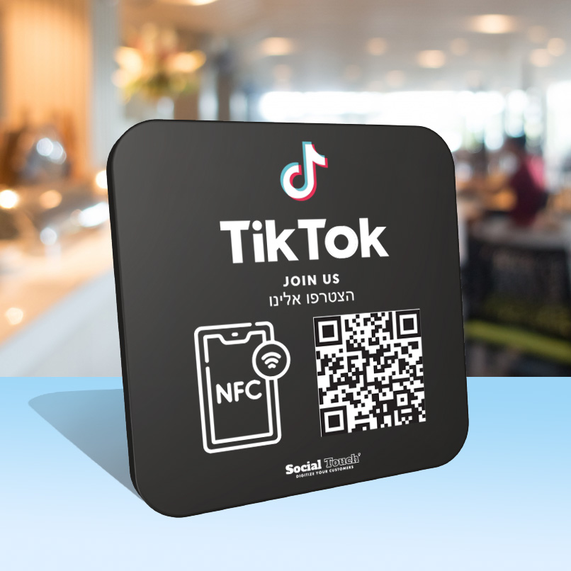 בעזרת תגית ה-NFC של SocialTouch ל-TikTok, המבקרים שלכם יכולים לגשת באופן מיידי לפרופיל ה-TikTok שלכם מבלי להזין את שם המשתמש שלכם. פשוט סרקו או החזיקו סמארטפון ליד פרופיל ה-TikTok שלכם, והקישור לחשבונכם יופעל.