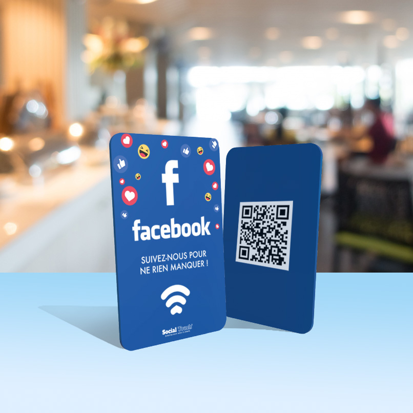 Avec votre carte NFC Facebook, vos clients ouvrent votre page en un simple contact. Plus besoin de chercher votre nom : ils peuvent liker, suivre ou contacter votre commerce en quelques secondes grâce à la technologie NFC.