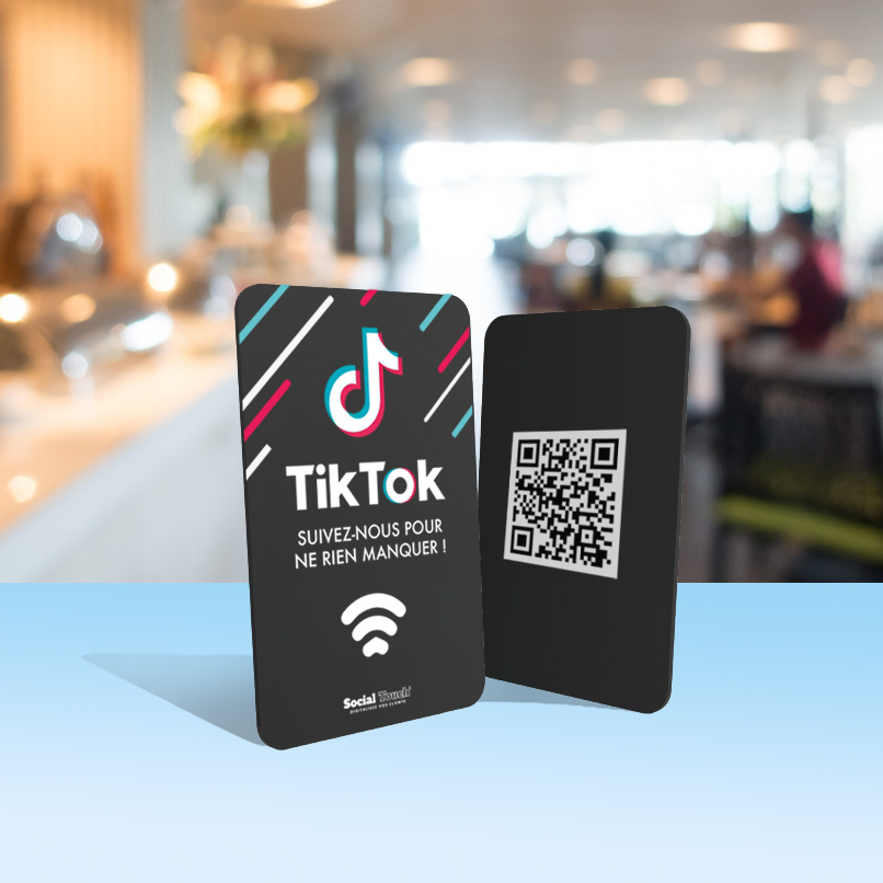 Avec la carte NFC TikTok, vos clients ou visiteurs accèdent instantanément à votre compte. Plus besoin de pseudo : un geste suffit pour plonger dans votre contenu et vous suivre.